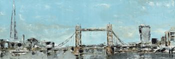 The Shard - Oil on linen canvas - Painted cream wood frame with blue detail - - 38cm x 61cm