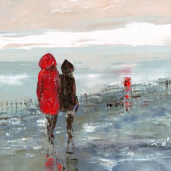Friends on the Promenade - Oil on box linen canvas - 60cm x 60cm - Cream wooden floating frame