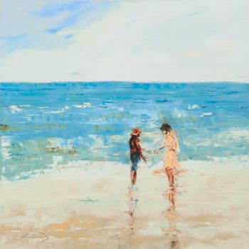 Friends on the Promenade - Oil on box linen canvas - 60cm x 60cm - Cream wooden floating frame