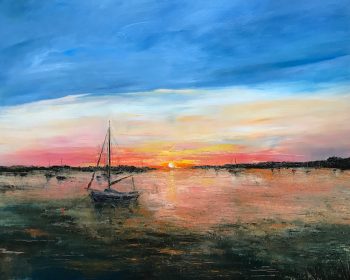 Boats and the Setting Sun - Oil on box linen canvas - 30cm x 60cm